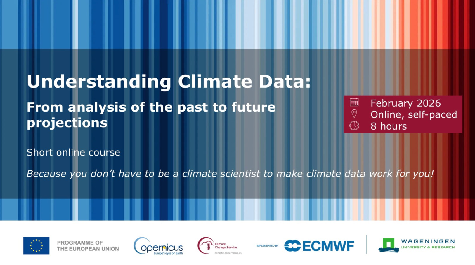 Many more details about this course including Registration are available from the C3S website at Online course: Understanding climate data | Copernicus