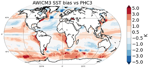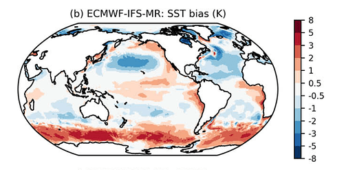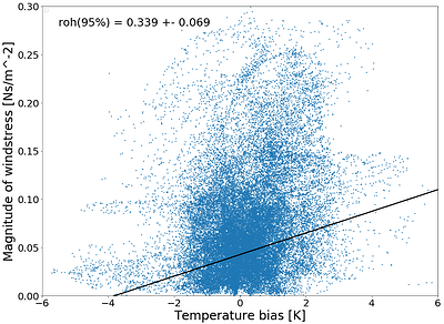 Hello everyone, at AWI we were having yet another look at the SST biases of the coupled climate simulations made with OpenIFS 43r3 - FESOM2, but also at ECE3(IFS36r4 - NEMO3.6), and the ECMWF IFS43r1 - NEMO3.6 HighresMIP contribution. All of these models show the well known warm biases over the SO among other places. First we calculated the Spearman's rank correlation coefficient of the SST bias and the magnitude of the wind stress, which turned out to be significant and positive, motivating further digging.