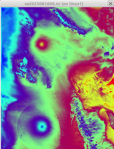 Instead of the pole feature these circles exhibit sometimes some stripes as in this case, where stripes (or at least “straight” lines) are going from the center to the top, to the right, to the bottom, and to the north. Another common stripe pattern is also visible in the second plot above (June 3, 2025, 6 UT) with a narrow stripe going to the left and a broad one to the southeast. Here, the circle feature is hard to see. I haven’t investigated whether this issue appears in other years, in CARRA-West, or in other variables, too.
